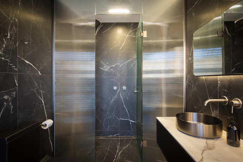 Subway tiles are still popular too, especially when laid in interesting patterns. Overall, texture is a key element, whether it’s in tiles, vanities or even reeded shower glass.