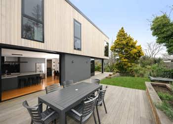 Custom designed for a family, this two-storey luxury townhouse with stream boundary has been built to let in the sun, with large sliding glass doors offering seamless indoor/outdoor flow to the sheltered, level wrap-around deck.
