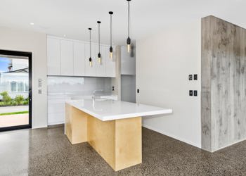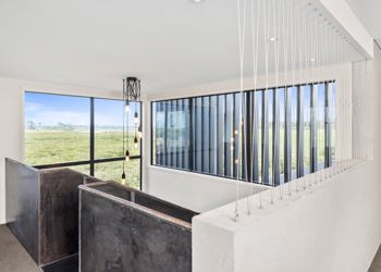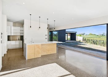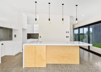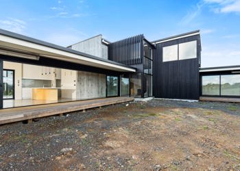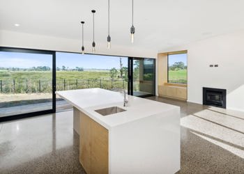 Comprised of a set of strong inter-connecting volumes, this contemporary home exudes quality, class and effortless cool. Natural concrete provides a grounding force both inside and out, with timber elements adding warmth and charm to the minimalist interior. A stunning spiral staircase corkscrews between the polished concrete ground floor and upper carpeted level - which houses the bedrooms and bathrooms.