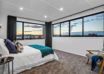 This two storey architecturally designed home was designed with ultimate family living in mind. It features two separate living areas, three designer bathrooms and four generously sized bedrooms, each with views of Lake Taupo and/or Mt Tauhara. The stylish Kitchen, Scullery, Bar and Media room are an entertainer’s dream. The kitchen takes advantage of the sunny outlook with sliding doors opening onto a wraparound deck, complete with a louvre system providing shade and shelter.