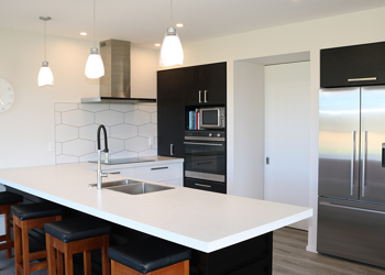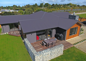 This Oamaru showhome has been built to accommodate a growing family in comfort and in style, with open plan living, dining and kitchen, and integrated family room. The home is oriented to capture all day sun from the kitchen through to the alfresco dining and family room in the evening. The striking plaster with cedar weather board gable ends ensures this home slots seamlessly into the North Otago Landscape.
