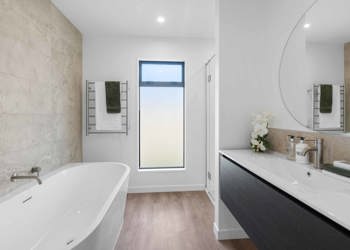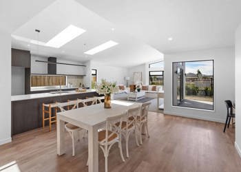 This stunning architect-designed 3-bedroom home blends style, comfort, and functionality in every detail. Featuring soaring pitched ceilings throughout the light-filled living areas, the home is bathed in natural light thanks to its North-West orientation and thoughtfully placed skylights. At its heart is a spacious kitchen, complete with engineered stone benchtops, premium Bosch appliances, and a generous walk-in pantry—perfect for the modern home chef. All bedrooms are double-sized, while the custom-designed laundry offers ample bench space and a tiled splashback. The fully insulated garage, including the door, is finished with marine-grade carpet, ensuring both durability and comfort. Additional features include a digital front door lock, a powerful 8kW heat pump, plush 44oz solution-dyed polyester carpets, and 5mm SPC waterproof vinyl flooring. Externally, the home showcases Resene Rockcote plaster and feature timber cladding, all crafted to the highest standard by David Reid Homes Canterbury.