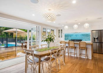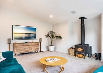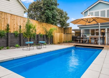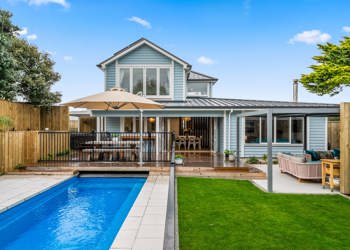 Built by our David Reid Homes Wellington & Kapiti team, Here's a seaside house that offers the best of both worlds. This home took home three prestigious awards at the Regional House of the Year awards including the Supreme House of the Year under $1mil and it isn't hard to see why. It has all the character, lines and charm of a quintessential Kiwi weatherboard house, but with the benefits of a brand-new build. This beachy beauty is both cutting-edge and classic. Shades of blue play an important role in the 198sqm three-bedroom home that’s just a block away from the beach and the Tasman Sea beyond. Blue features in the exterior of the two-storey house along with smart white detailing, in the furnishings and in the cerulean kitchen splashback — not to mention the pool out the back. Laidback living is central to the house. The open-plan area takes up a swathe of the downstairs. The kitchen merges into the dining zone which, in turn, transitions into a pool deck in one direction and a lounge in the other. Wide sliding doors divide the dining and living spaces, creating separate rooms when needed. As if that’s not enough, there’s an outdoor pavilion with a louvred roof, timber walls and built-in fireplace. Three bedrooms, two bathrooms and an array of features such as timber balusters, an integrated pantry, designer lampshades, bifold windows and doors, solar panels and an outdoor shower make this a true classic hit.