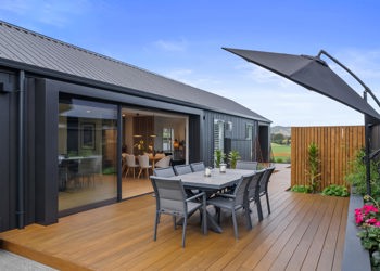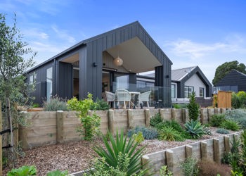 Recently awarded a regional gold at the Master Builder’s House of the Year, this pavilion-style home, with places to rest and work, has stylishly fulfilled the owners’ brief for their rear section with expansive western views in Waikanae. A boardwalk to the front door leads through to an entrance with a feature wall of dark abodo shiplap panelling and a window with a view to the park behind. Living and social spaces flow out to the right with a long open-plan kitchen, dining and living zone. Morning sun is captured in the kitchen nook with its built-in window seat.
