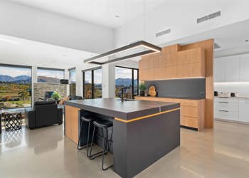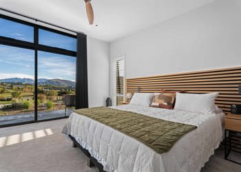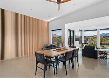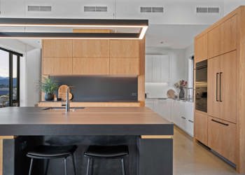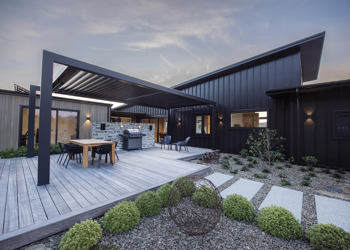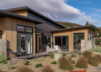 Some things are worth the wait. After many years of living in houses already on the land they farmed, the semi-retired clients finally have the home they dreamed of, built by our award-winning David Reid Homes Wanaka team. The 345sqm, four-bedroom beauty hasn’t been built solely for them, however. This grand property with distinct wings has been designed as a base for generations of their family. With its long wedge-like forms, and exterior clad with coloured steel, vertical timber and stacked stone, it is a beautiful home base. There’s an awful lot of house here — two living spaces, two-and-a-half bathrooms, a media room, office, separate laundry, drying/storage room and double garage. Thanks to smart design and skilful crafting, however, part of the house can be shut off when only the owners are in residence. When family or friends arrive, soft close cavity sliding doors open it up again. The moody hues of the Central Otago landscape the house occupies are reflected in the interior. An oakveneer kitchen and scullery are the hub; timber and slate-grey tones reinforce the natural vibe. Several outdoor living zones flow from inside, one of which is covered and has a barbecue — all-year alfresco dining is a given. This is next-generation living.
