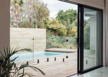 With pale vertical cedar cladding, granite and clean lines, this contemporary family home has a decidedly mid-century Palm Springs aesthetic.