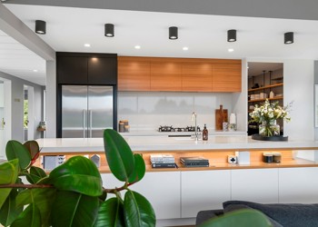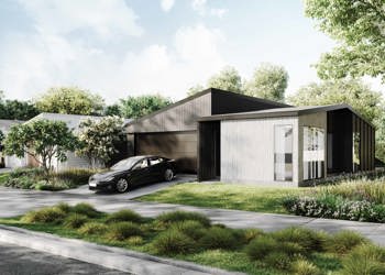 Featuring clean angular lines and a striking sloped roof, the home’s exterior combines warm timber textures with bold dark cladding for a contemporary and timeless look. Inside, the layout is thoughtfully designed to maximise space, natural light, and seamless indoor-outdoor flow. A refined material palette enhances the sense of warmth and sophistication throughout the home.
